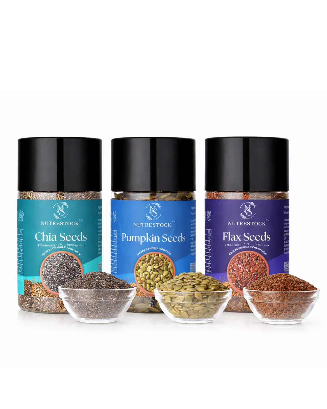 Omega-3 Power · Fiber Boost · Antioxidant Support Nutrestock Chia, Flax & Sunflower Seeds Combo...