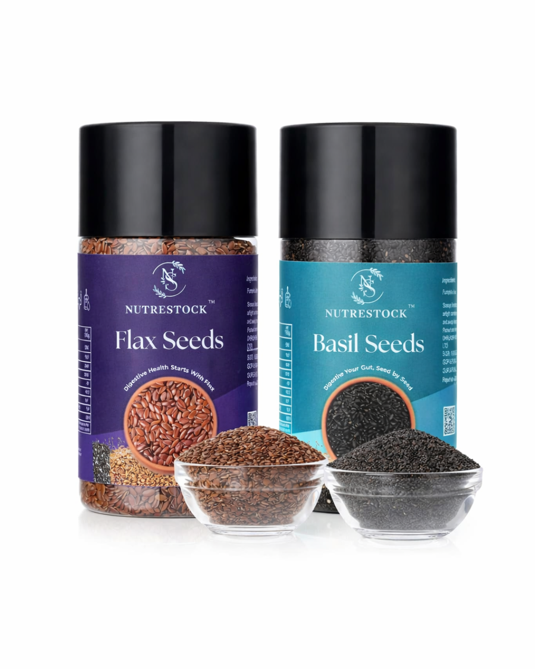 Nutrestock Superfood Combo – Flax Seeds 250g & Basil Seeds 250g | 100% Natural, Raw & Vegan | High Fiber, Omega-3 & Detox Support