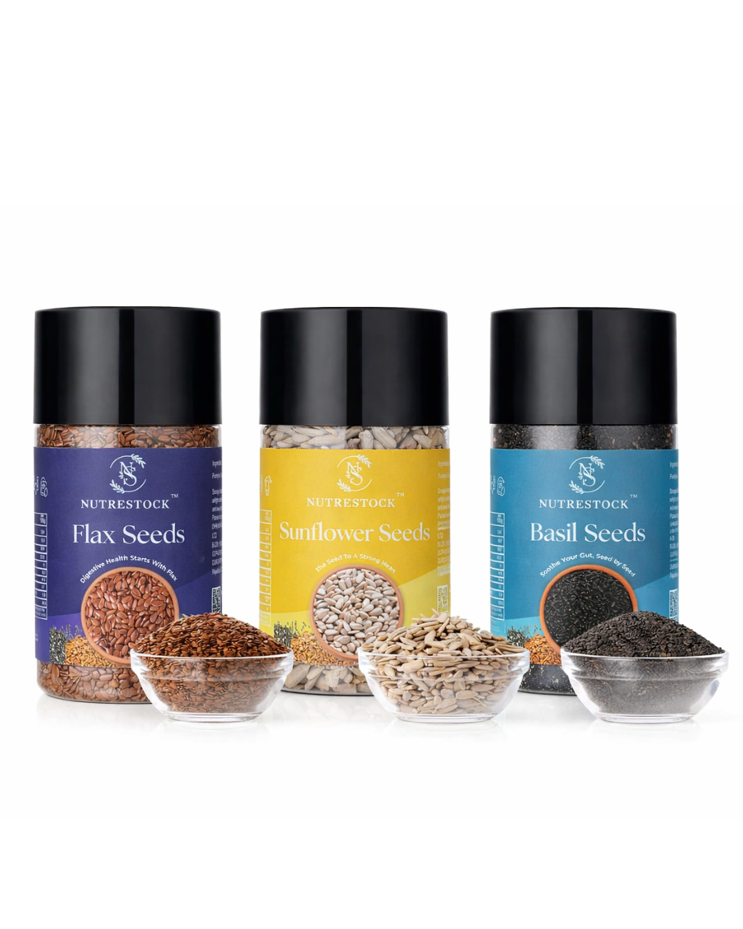 Nutrestock Flax + Sunflower + Basil (Sabja) Seeds Combo (250g each)